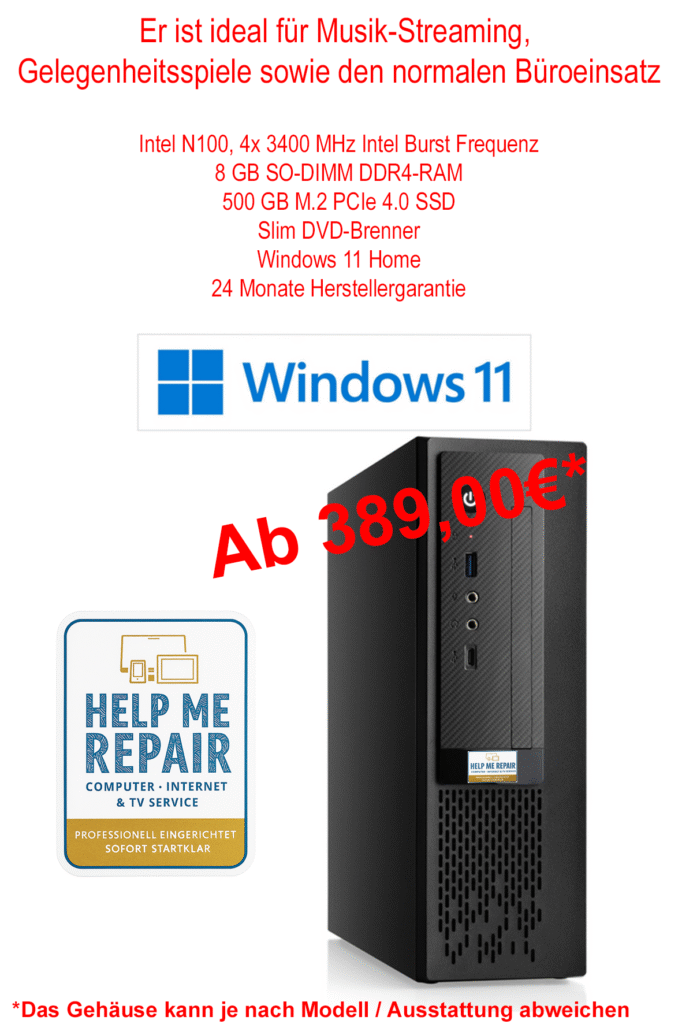 Auf Wunsch komplett eingerichtet, mit Übernahme Ihrer Daten und Installation aller benötigten Programme.